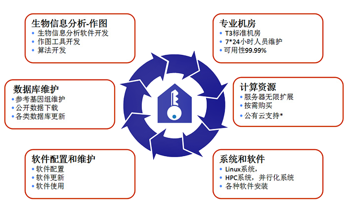 依托百邁客云(BMKCloud)這個(gè)集生物信息分析軟件、數(shù)據(jù)庫(kù)以及云計(jì)算為一體的生物大數(shù)據(jù)信息分析平臺(tái),在一年的使用時(shí)間權(quán)限內(nèi),提供多種包含標(biāo)準(zhǔn)化流程分析和個(gè)性化流程分析的集成式APP和100多款生物信息軟件及制圖工具,及12PB的海量公共數(shù)據(jù),可幫助國(guó)內(nèi)基因組學(xué)研究者快速完成高通量測(cè)序數(shù)據(jù)從下機(jī)到后期的數(shù)據(jù)深度挖掘,相關(guān)公共數(shù)據(jù)的檢索&整合分析(公共測(cè)序數(shù)據(jù)、文獻(xiàn)、功能基因信息等),分析技術(shù)和研究思路的學(xué)習(xí)交流,讓用戶能夠隨時(shí)隨地自主進(jìn)行基因大數(shù)據(jù)挖掘,從而多角度更高效的實(shí)現(xiàn)科研成果的產(chǎn)出。一個(gè)百邁客云賬戶(年服務(wù)套餐)相當(dāng)于一個(gè)專業(yè)的生物信息分析團(tuán)隊(duì)。